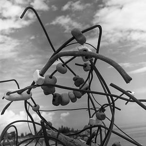 Tommy Thompson Park in Toronto, Ontario is built of construction waste. This image shows a a sculpture made out of rebar and bricks found on one of the brick beaches in the park. This image was taken on film.