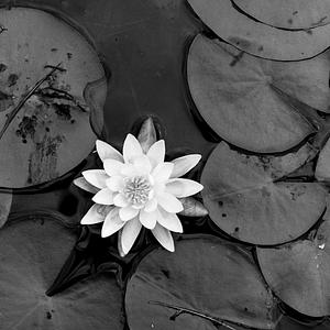 This black and white image of a waterlily was taken with a macro lens on film, and self developed.