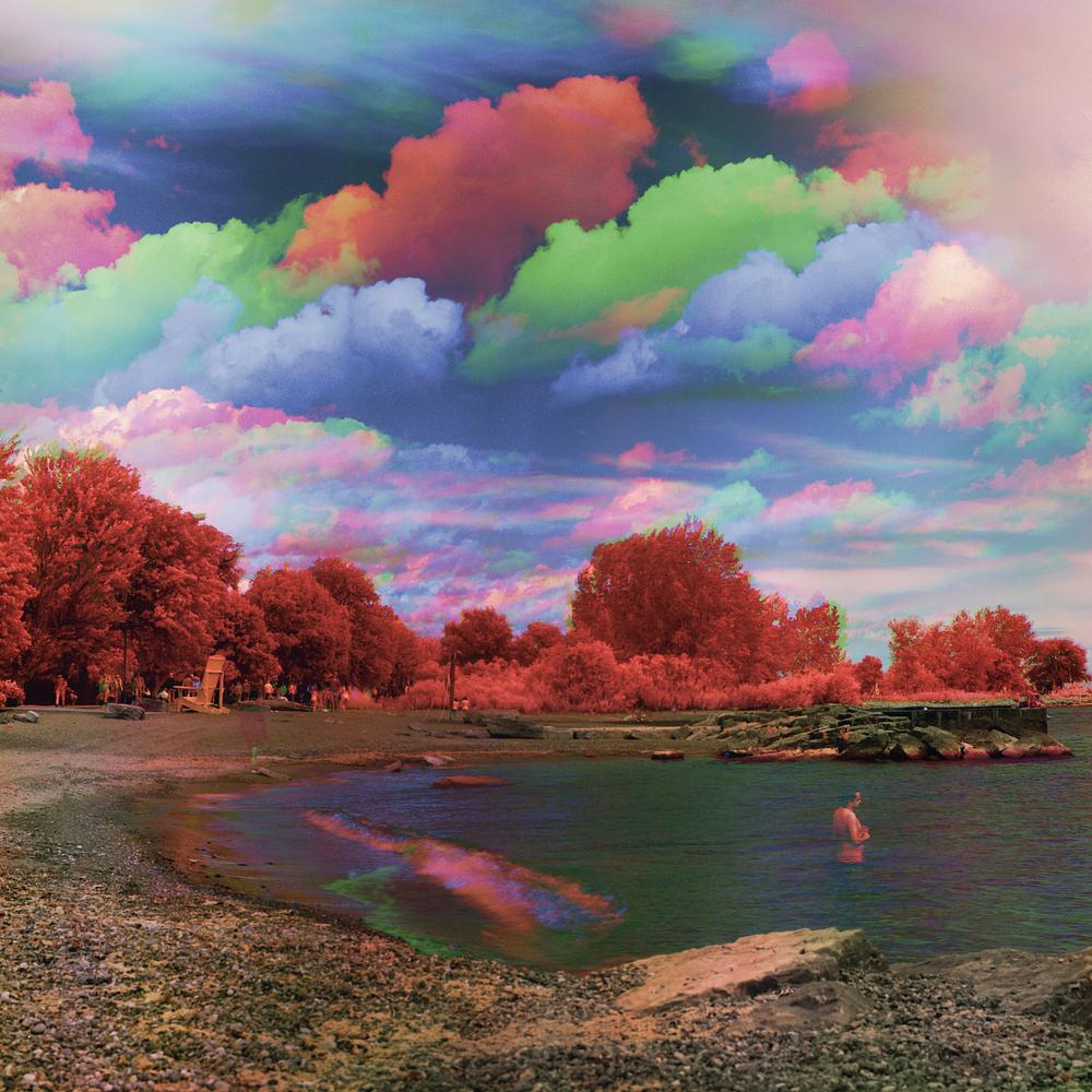 This infrared trichrome image was made by taking 3 images on infrared film. These images were then combined to create the above image. The different coloured shadows reflect movement in the scene in between exposures.